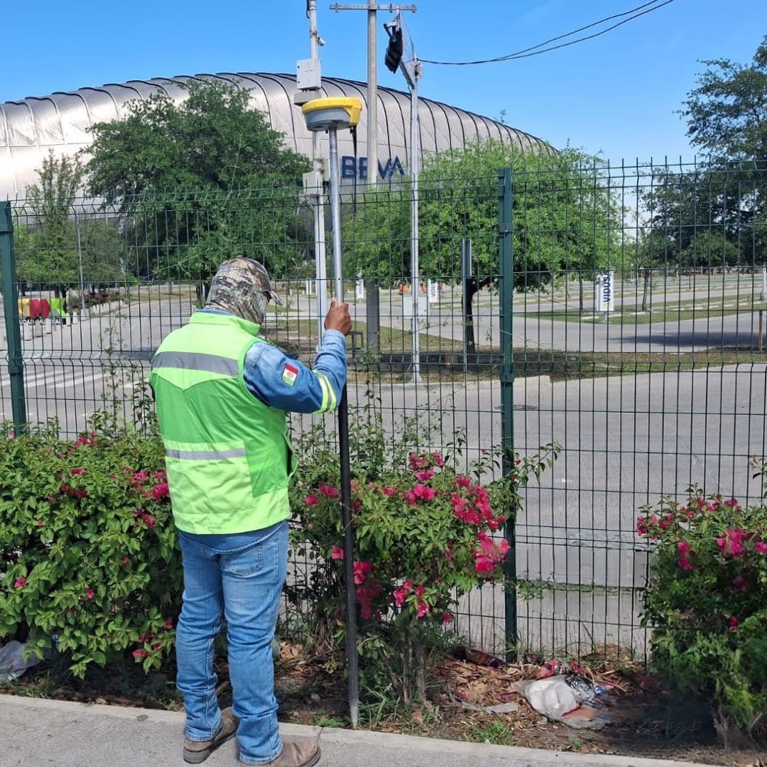 Medición con GNSS RTK, estación total y toma de fotografías de evidencia legal. Registro meticuloso de colindancias, postes, obras y características requeridas.